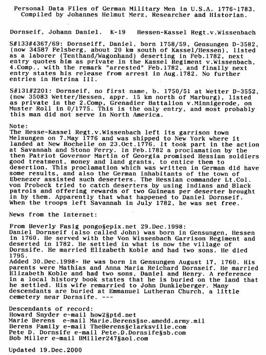 Personal Data Files of German Military Men in USA 1776-1783. Compiled by Johannes Helmut Merz, Researcher and Historian.